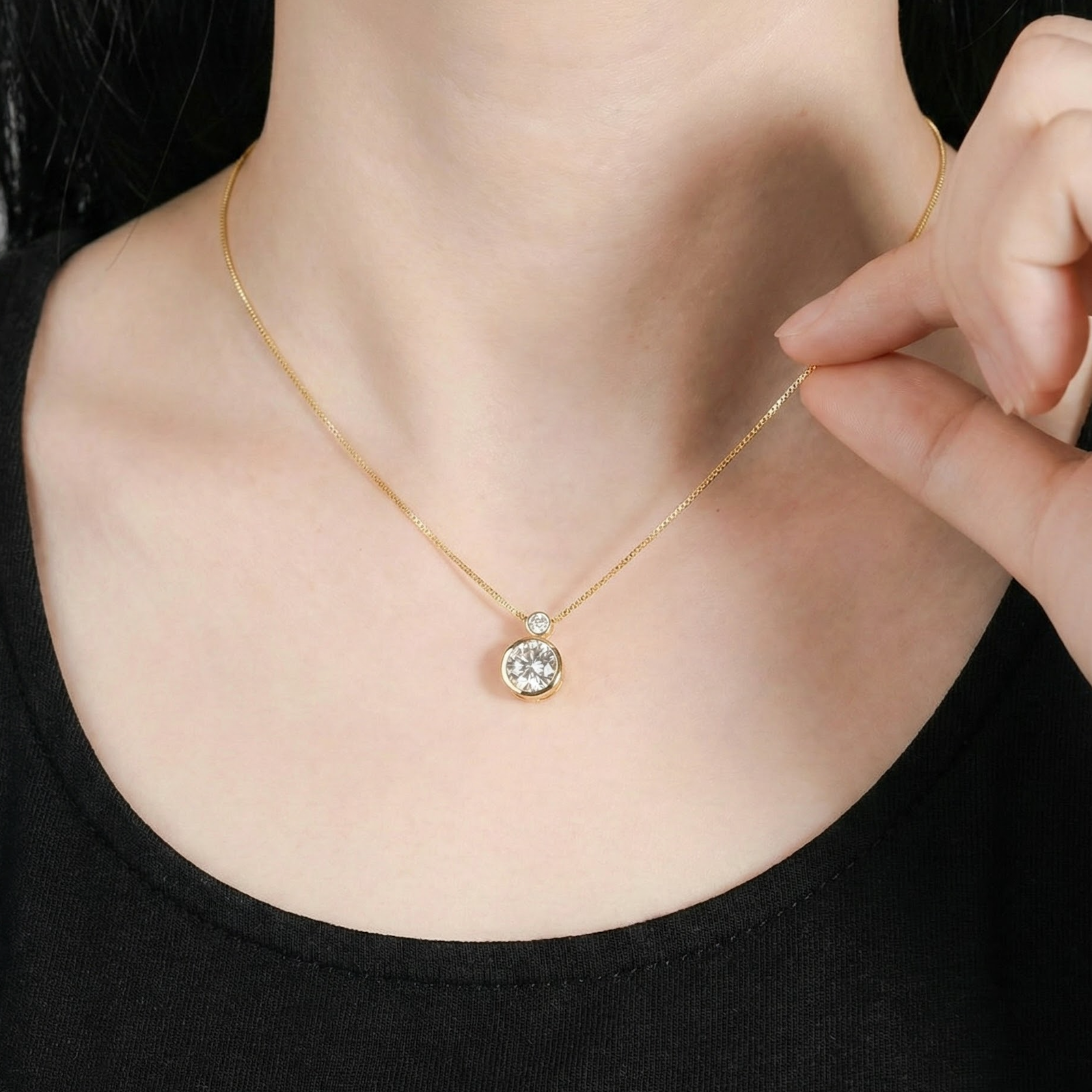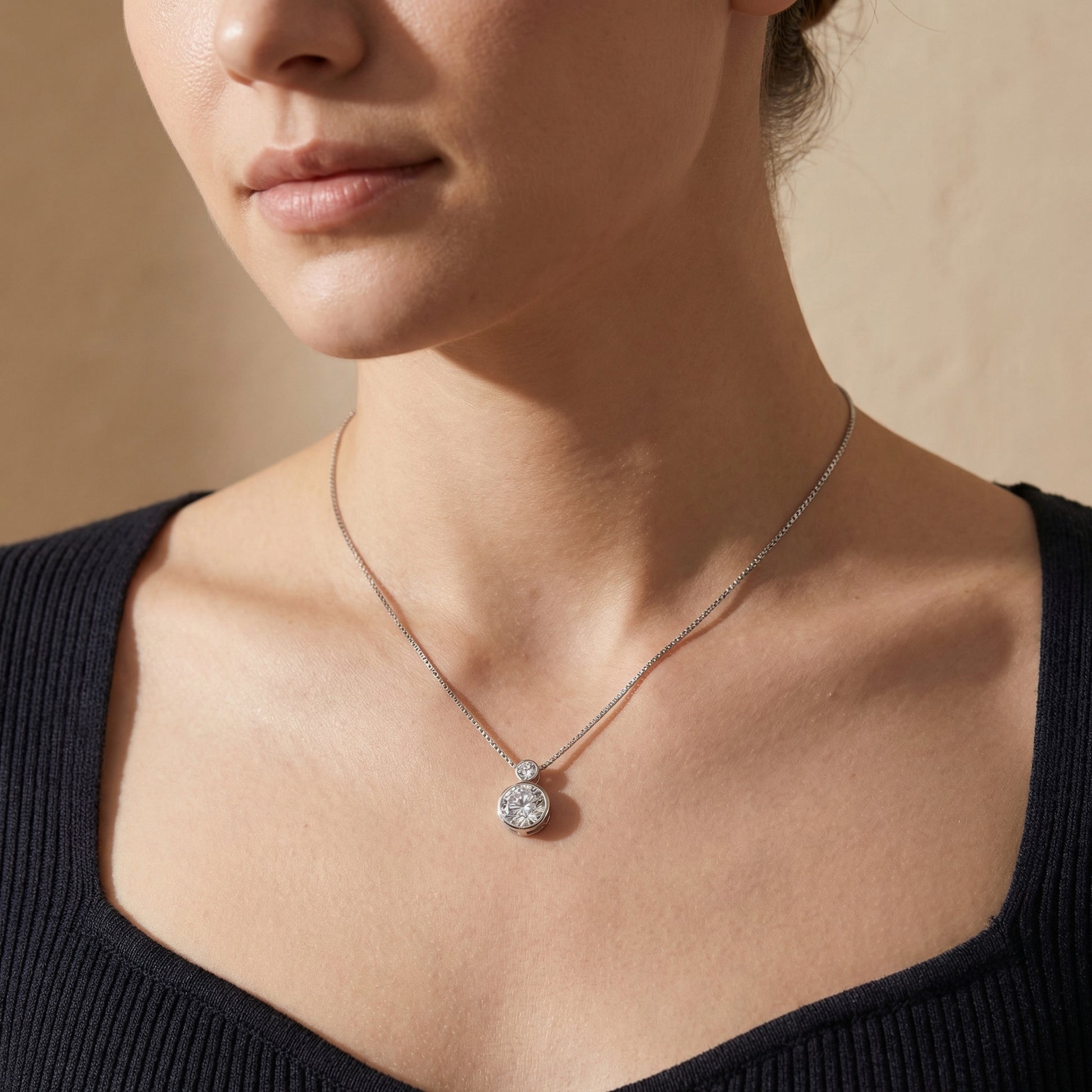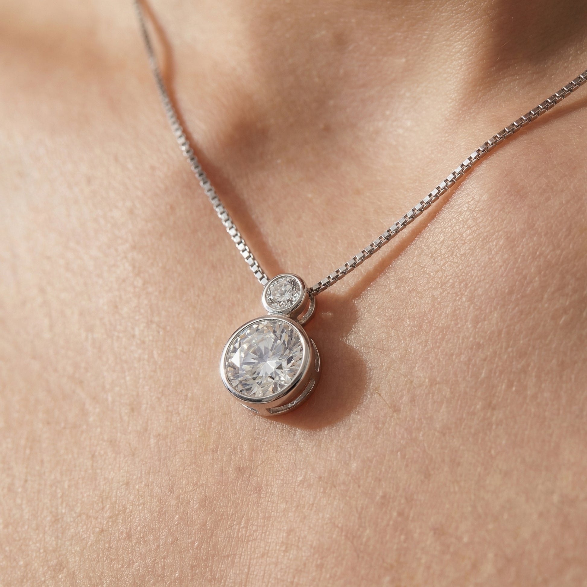 Suspended on a sleek chain.