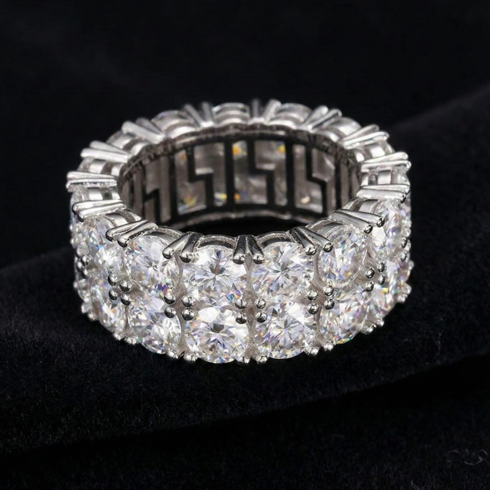 The Pinnacle Ring defies convention with sharp geometry and grounded weight, crafted in solid 925 sterling silver and detailed with our precision-set moissanite stones.