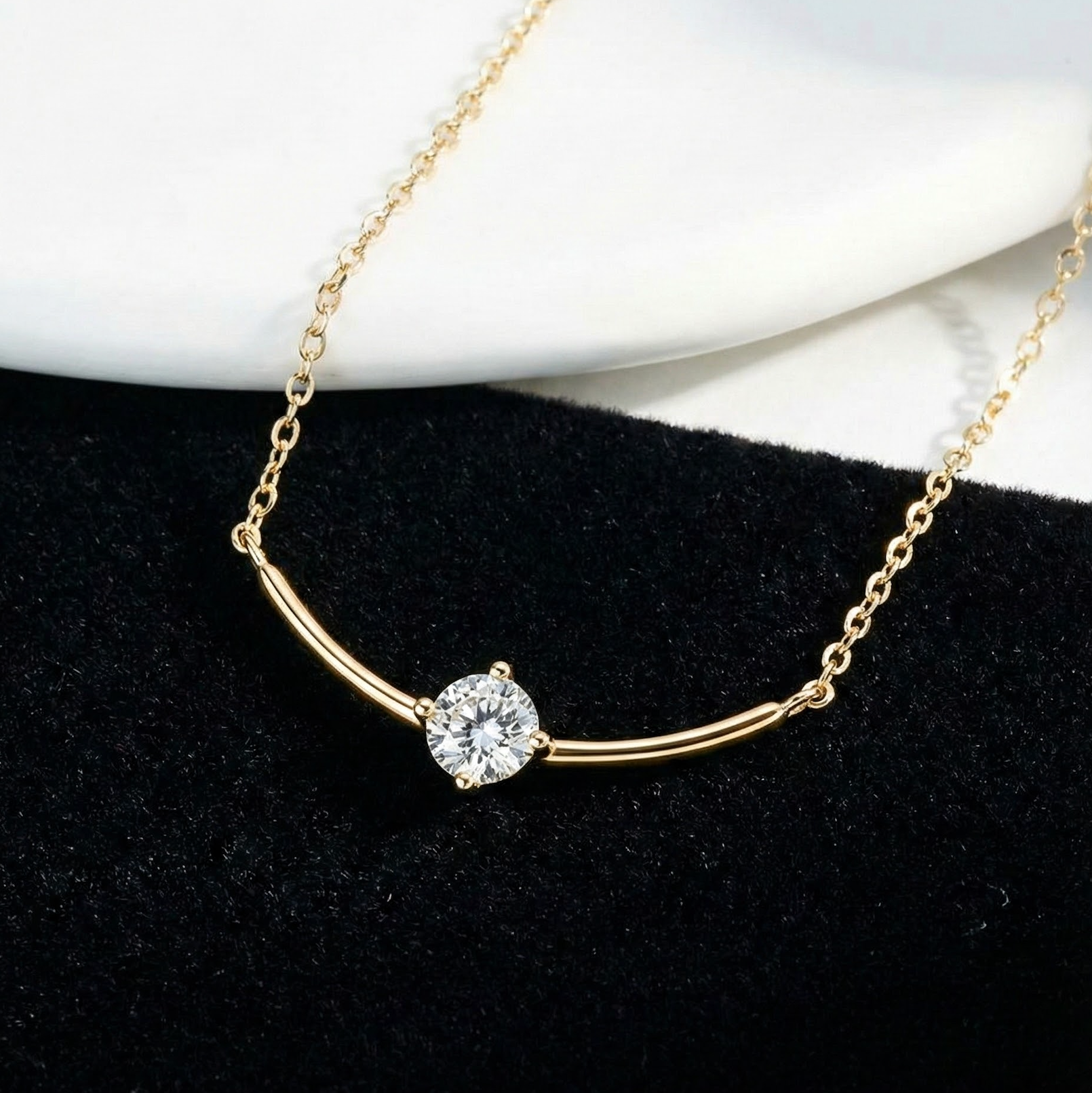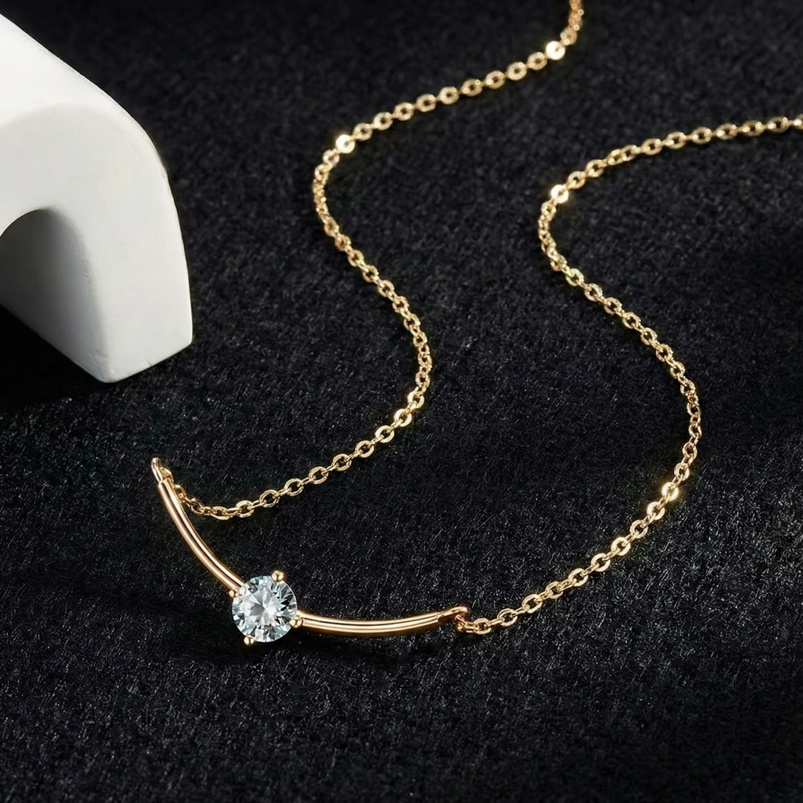 A brilliant round-cut stone centered between two gracefully curved gold arms.
