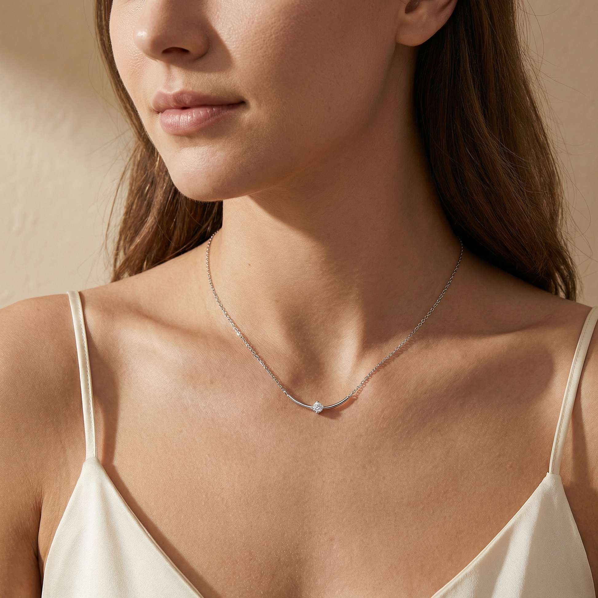 Its sleek lines and refined sparkle make it a quietly captivating essential for the modern jewelry wardrobe.