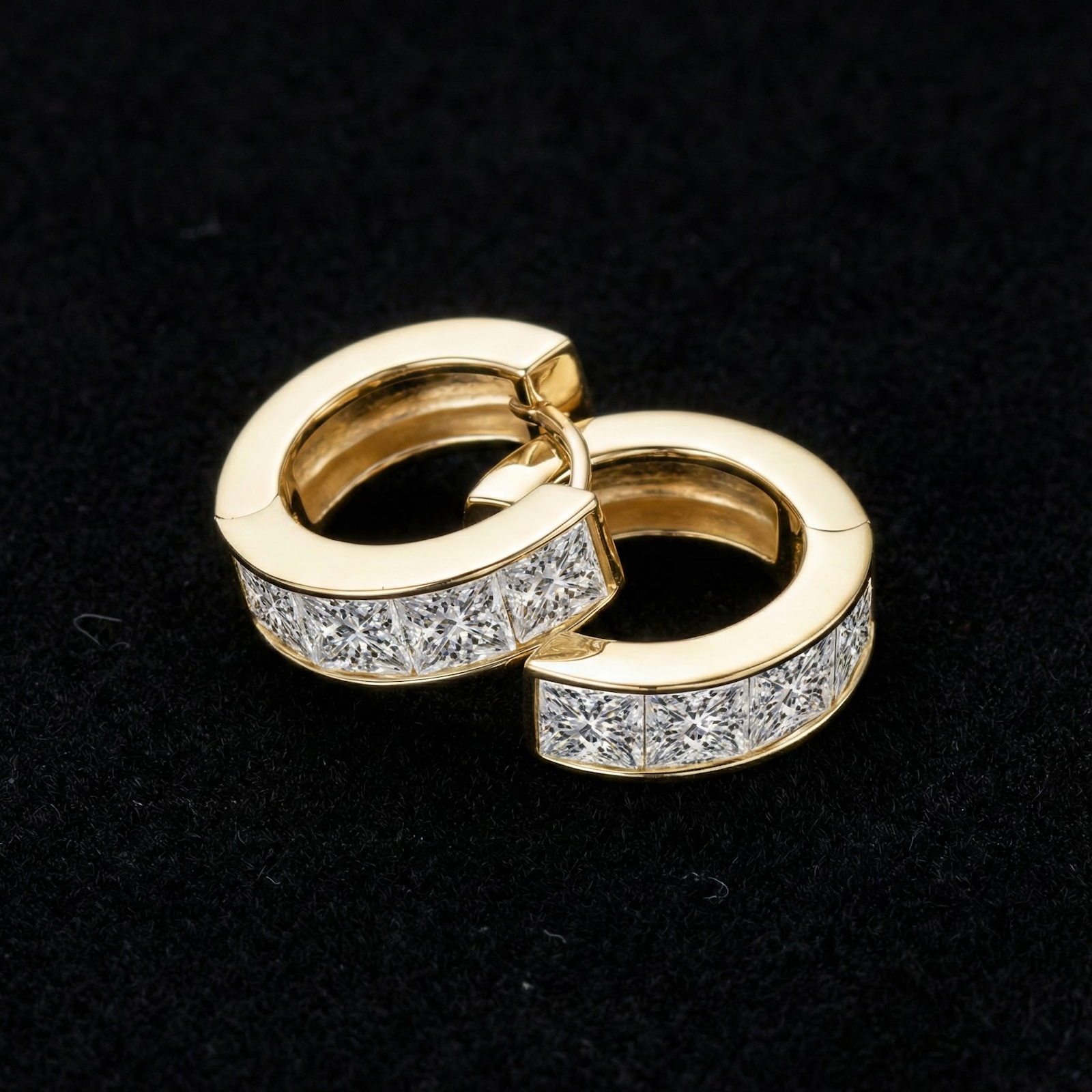 A flawless row of princess-cut stones set in a sleek, polished band.