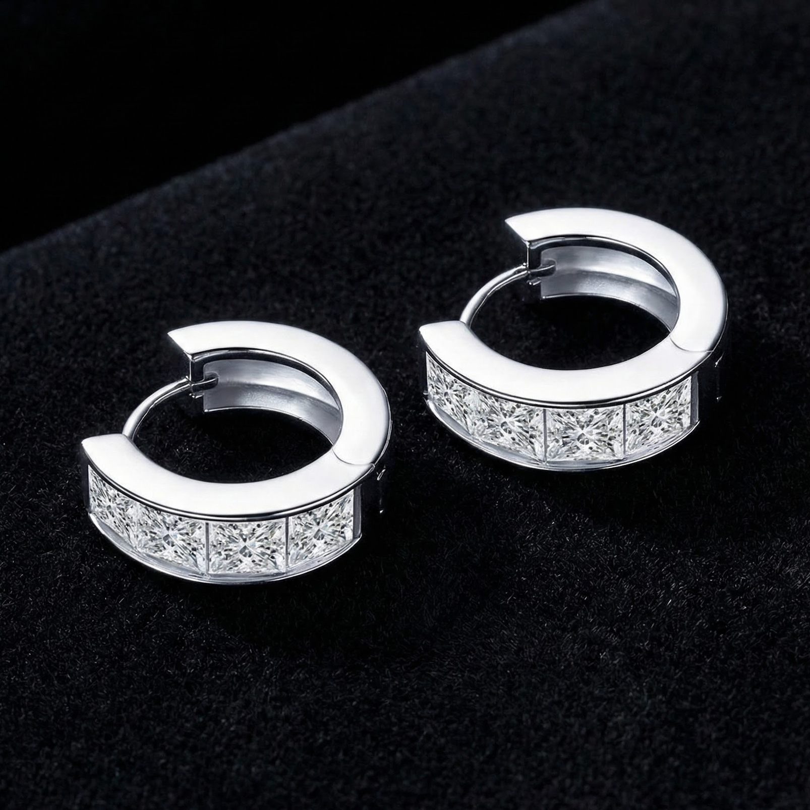 Metal: 925 Sterling Silver Gem Type: Real Moissanite Center Stone Color: Clear White Moissanite Shape: Princess Cut Main Stone Size: 4 × 4 mm (0.4 ct × 8 pcs), D Color Moissanite