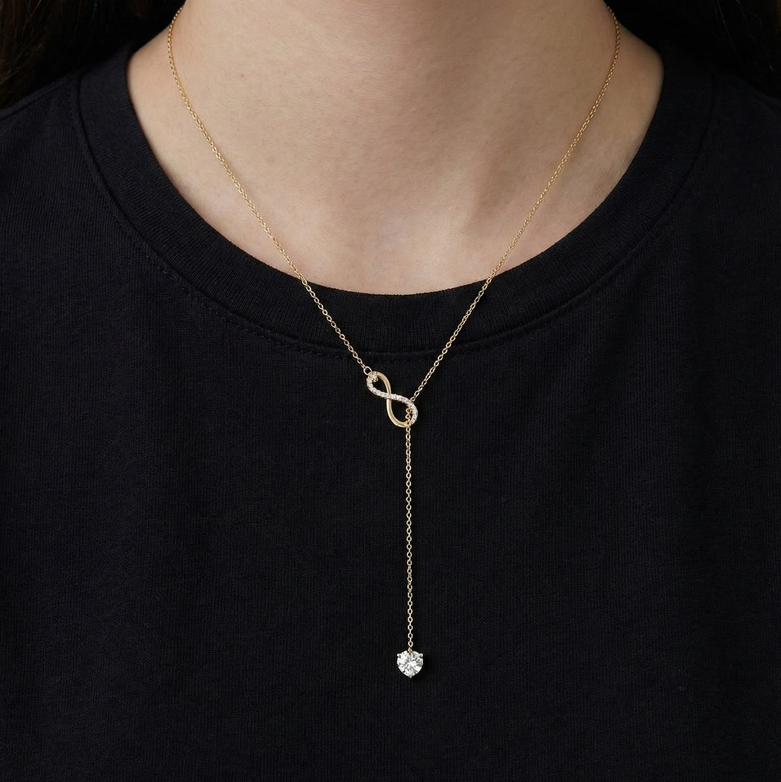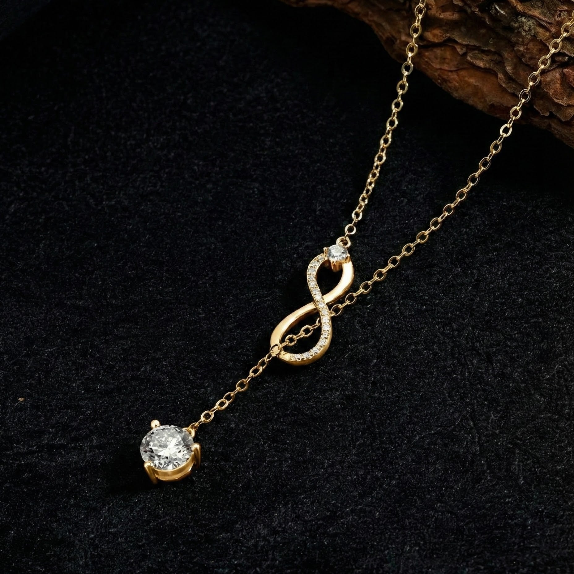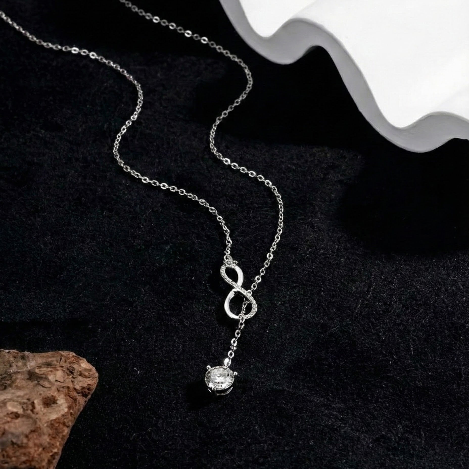 A pavé infinity loop, delicately curved, leading to a radiant center stone.