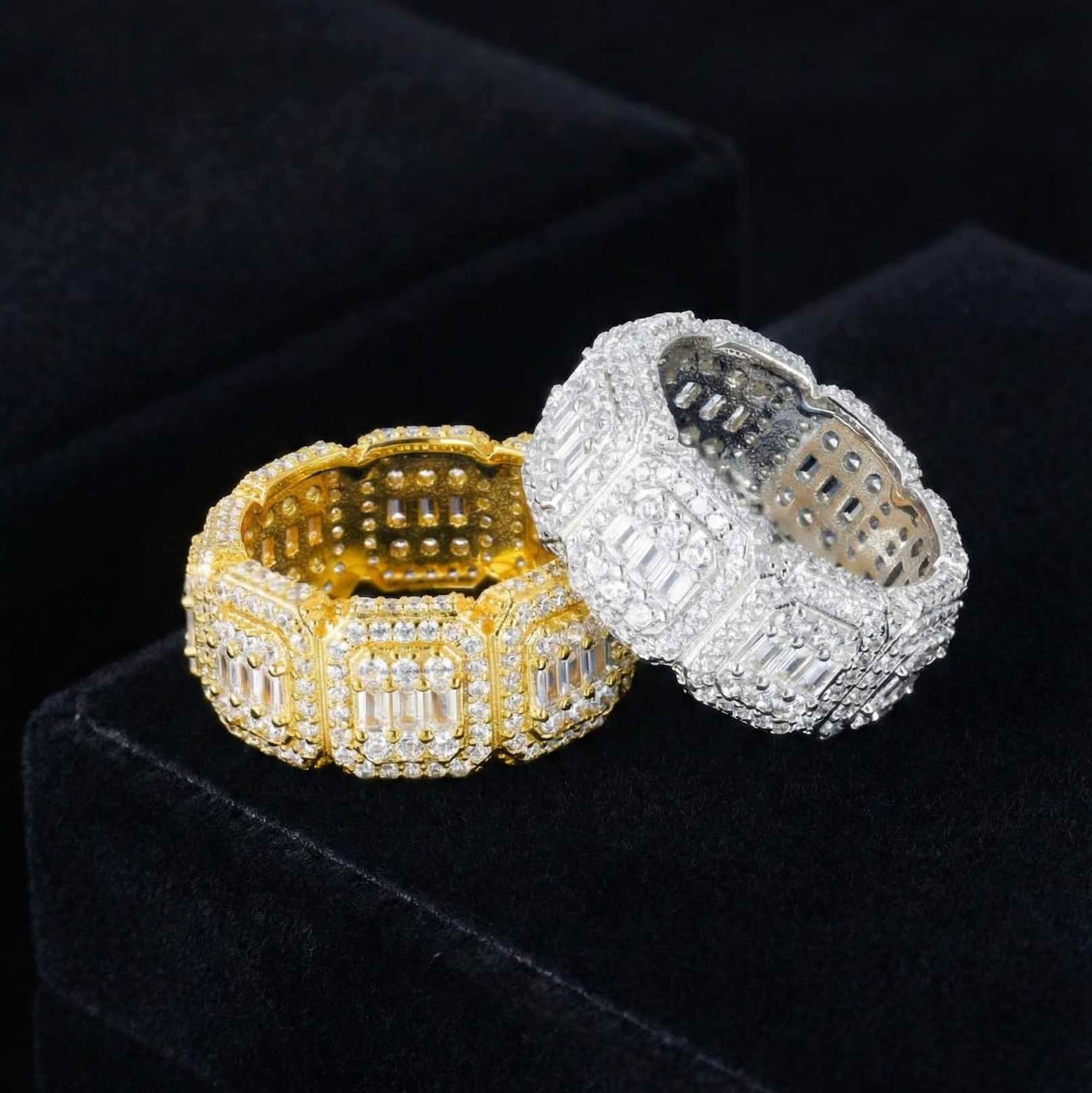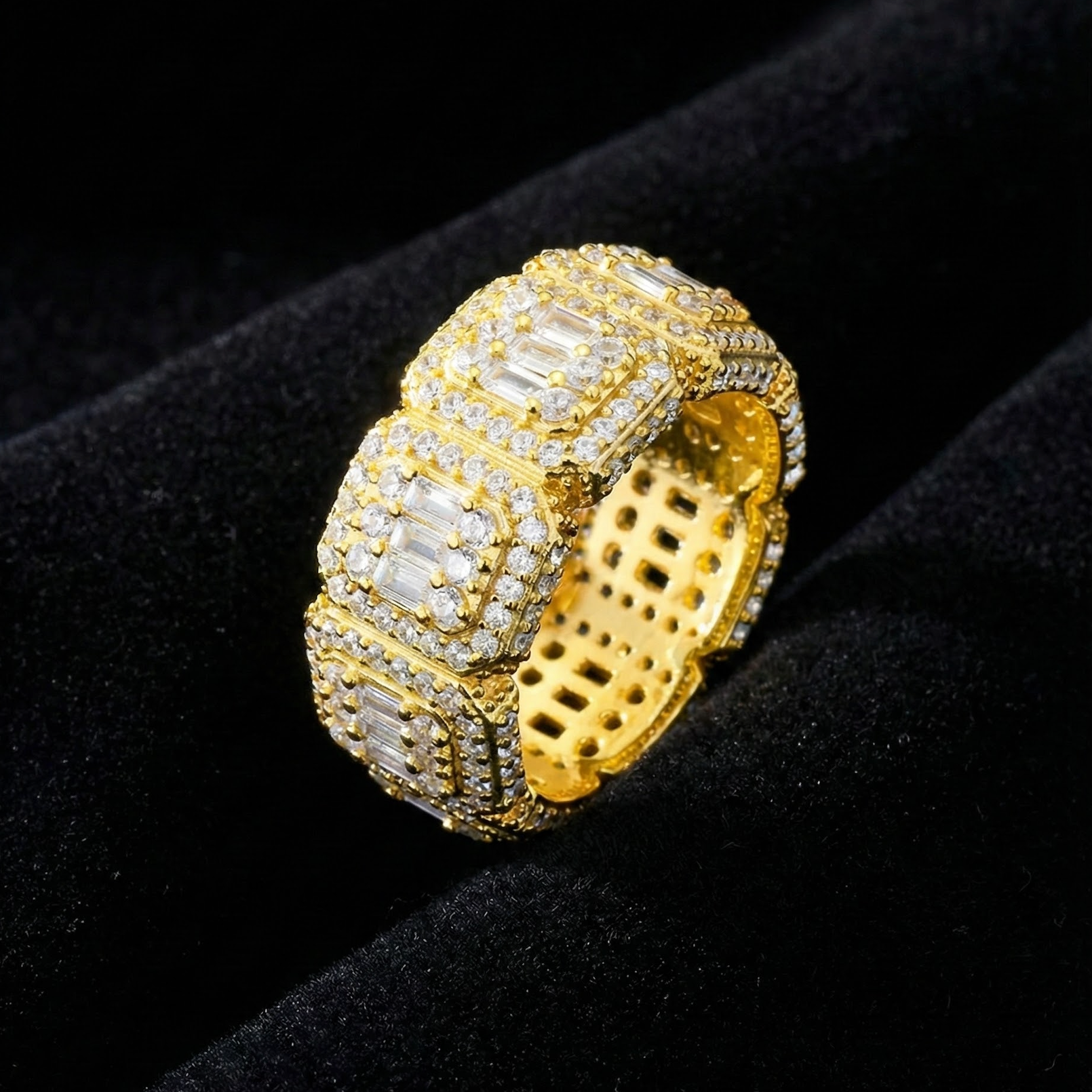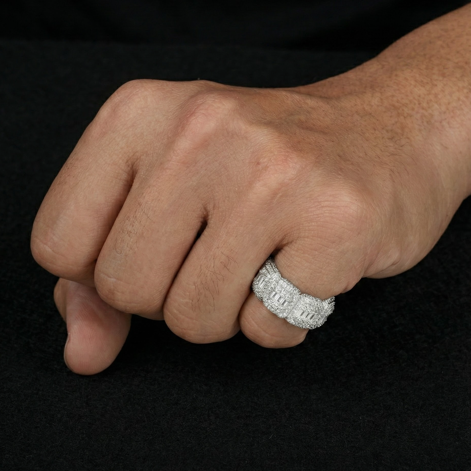 The Empress is a unisex statement in precision—anchored by our signature moissanite cut in clean, elongated facets for focused clarity and geometric presence.