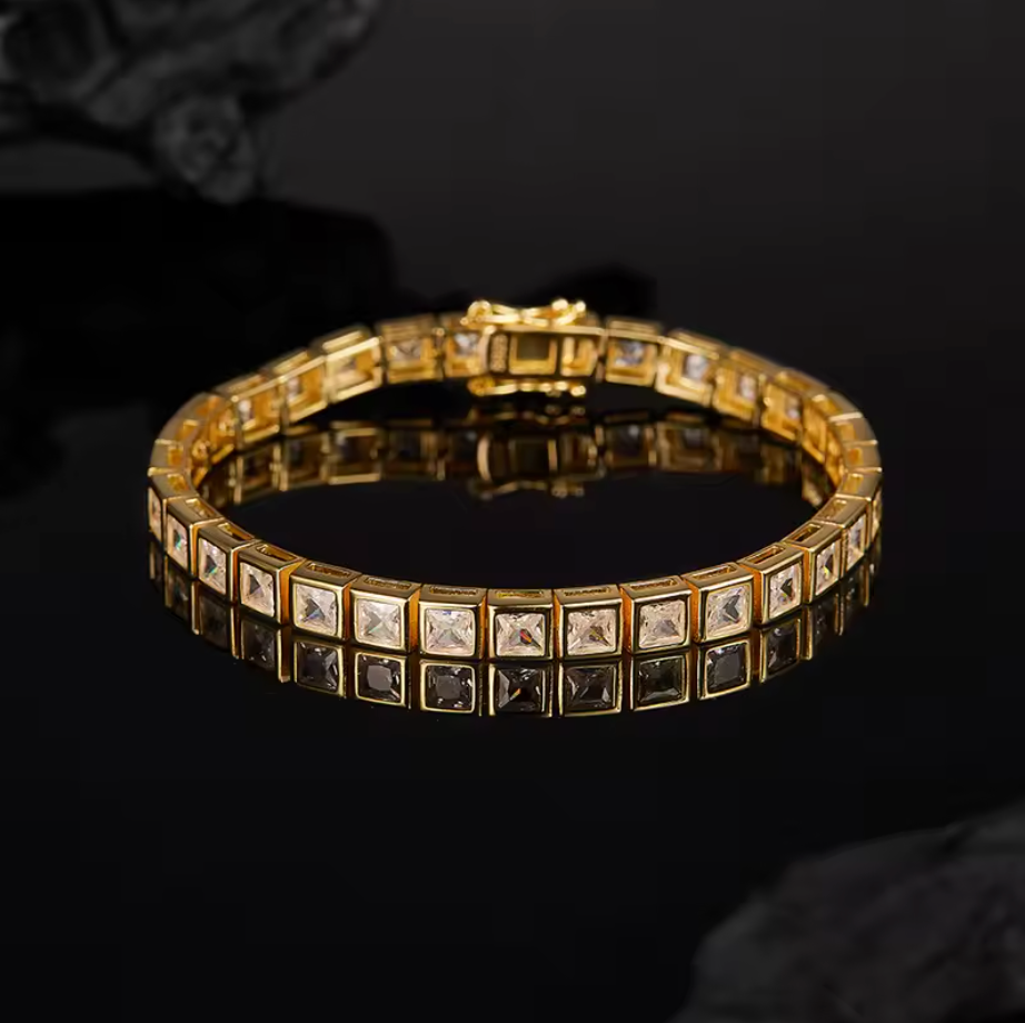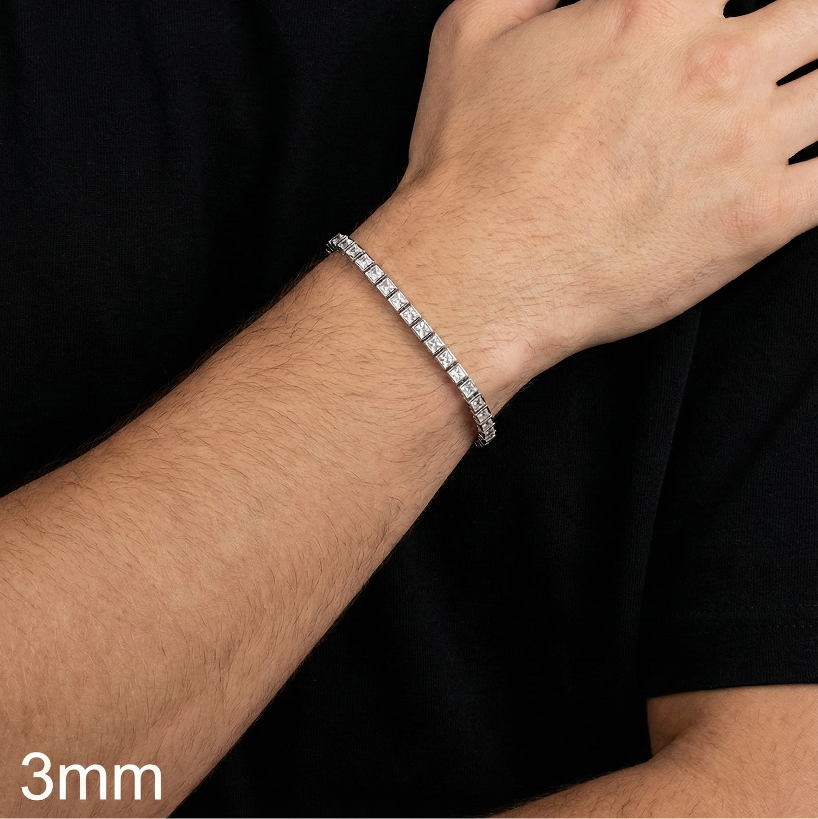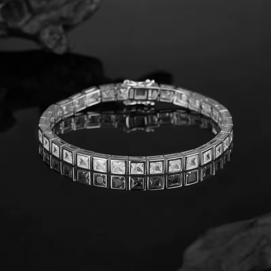 The Slate Tennis bracelet is defined by its clean symmetry and modern restraint—each square link precision-set with our signature moissanite, framed in solid 925 sterling silver