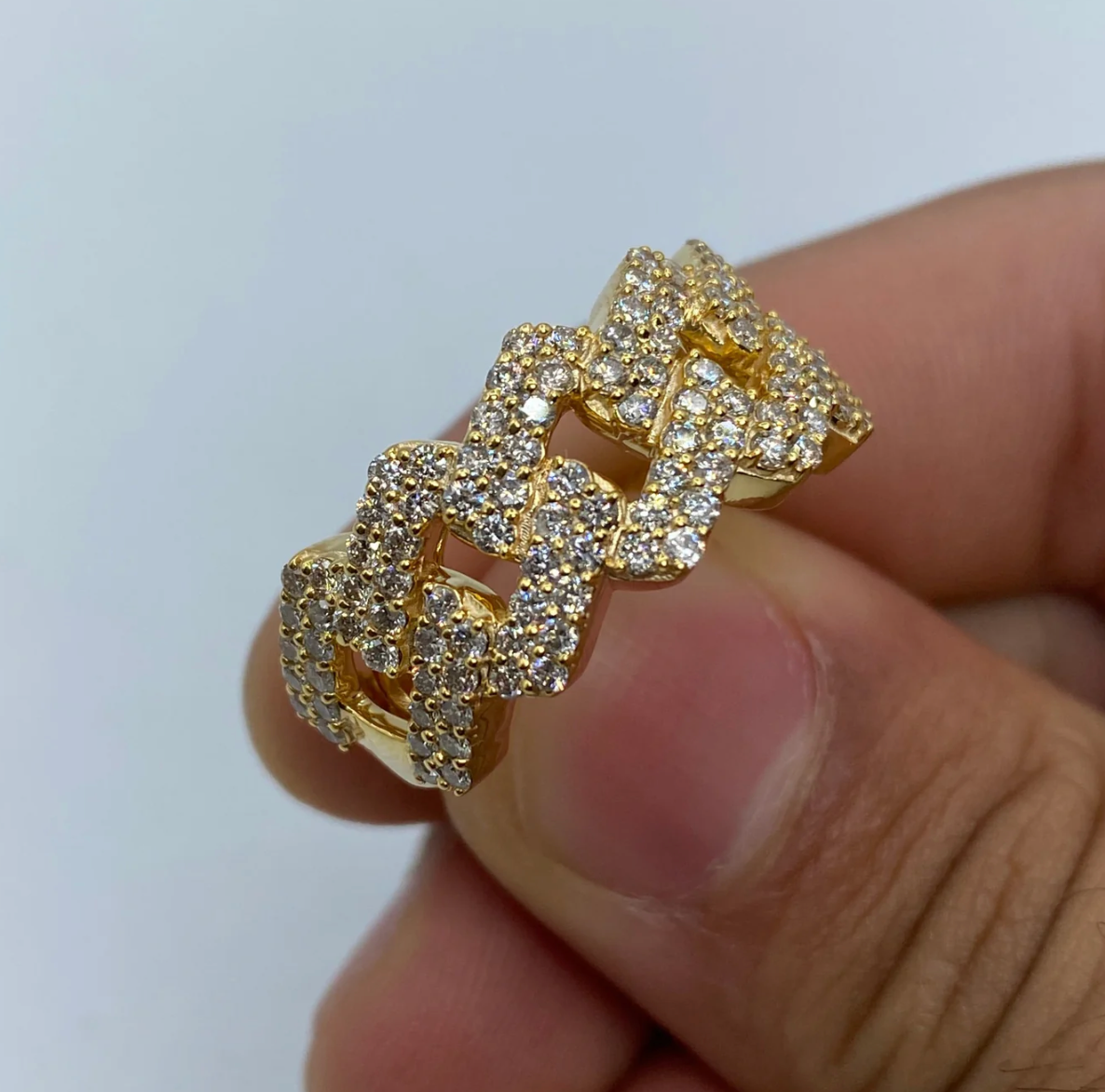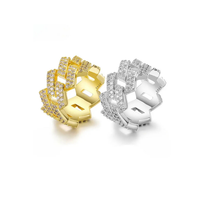 The Serrate redefines tradition with edge, featuring a geometric, link-like silhouette encrusted with our signature moissanite, set in a bold, serrated arc.