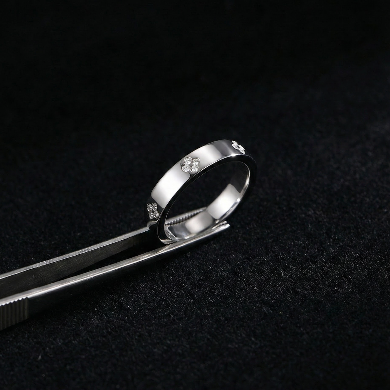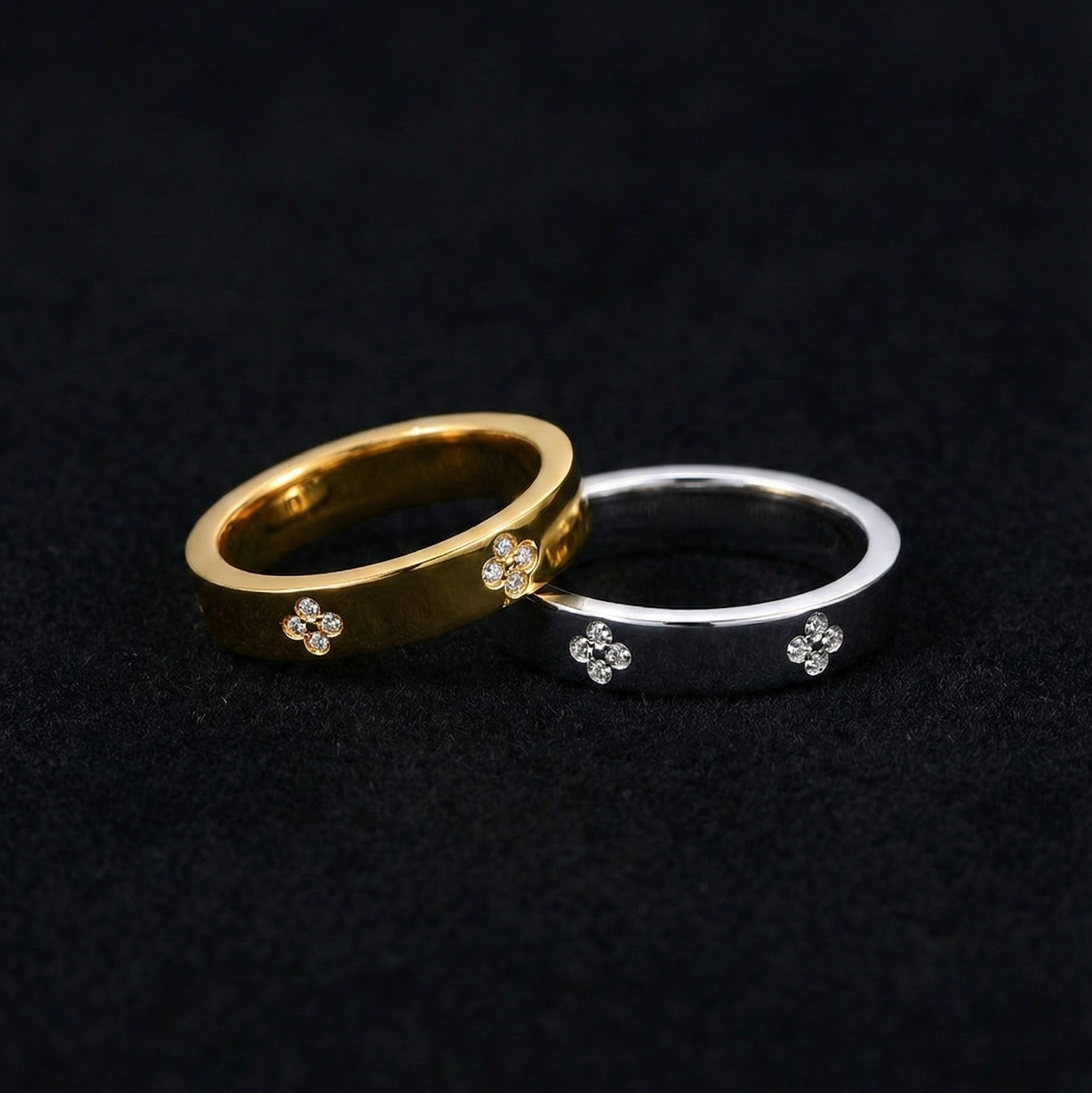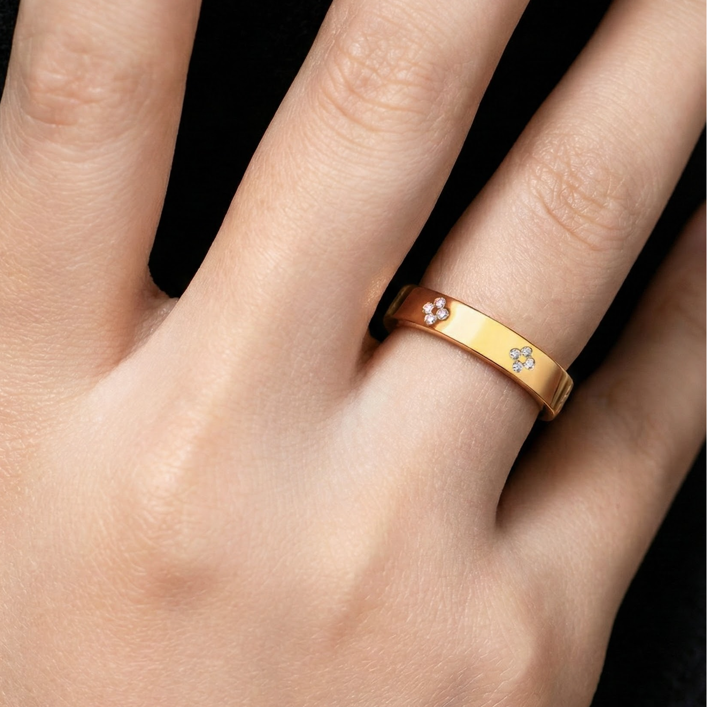 A sleek gold silhouette accented with delicate pavé floral motifs.
