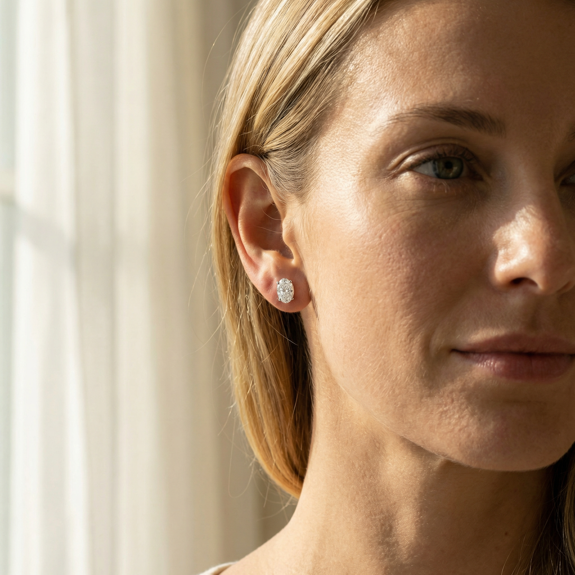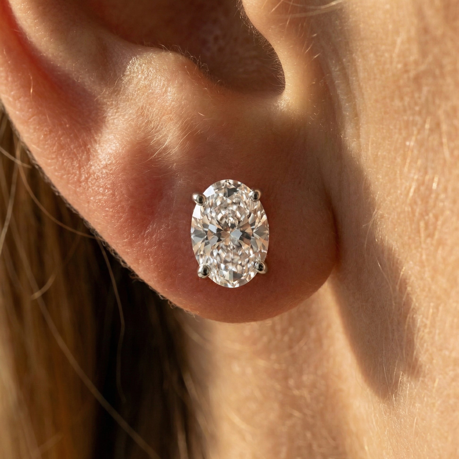 - Oval-cut moissanite stud earrings