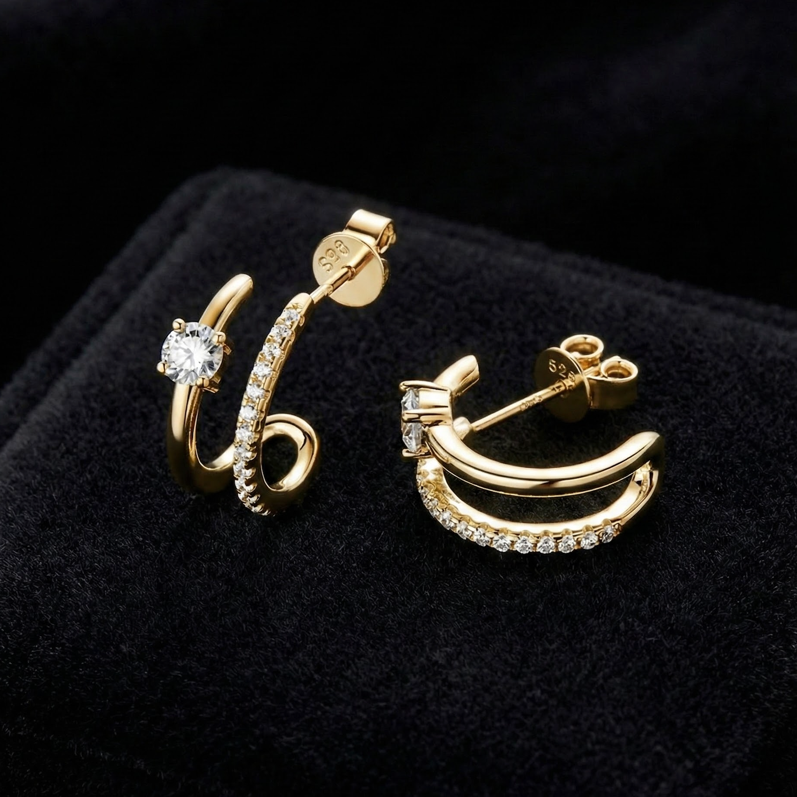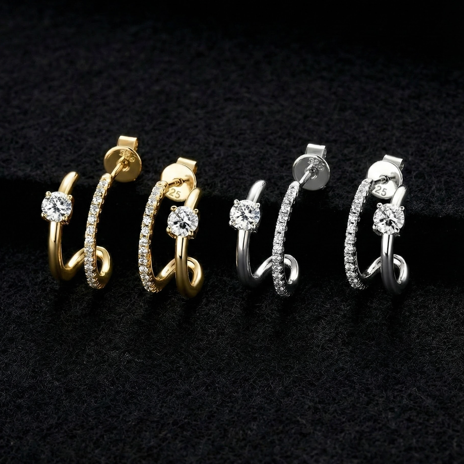 A contemporary take on classic hoops—perfect for those who embrace modern elegance with a touch of radiance.