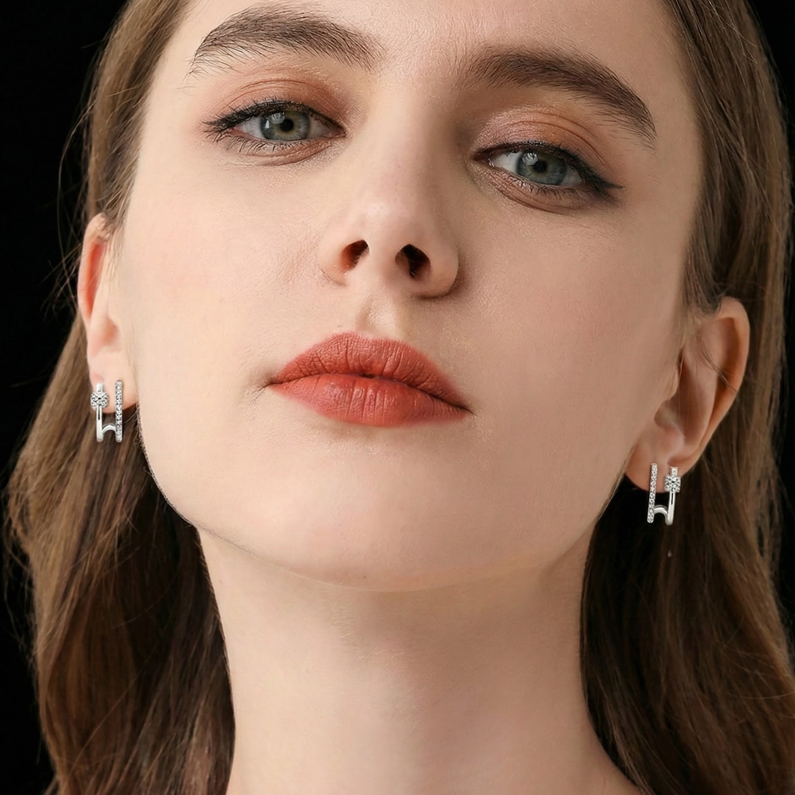 Crafted in polished silver, these earrings create an effortless balance between structure and brilliance.