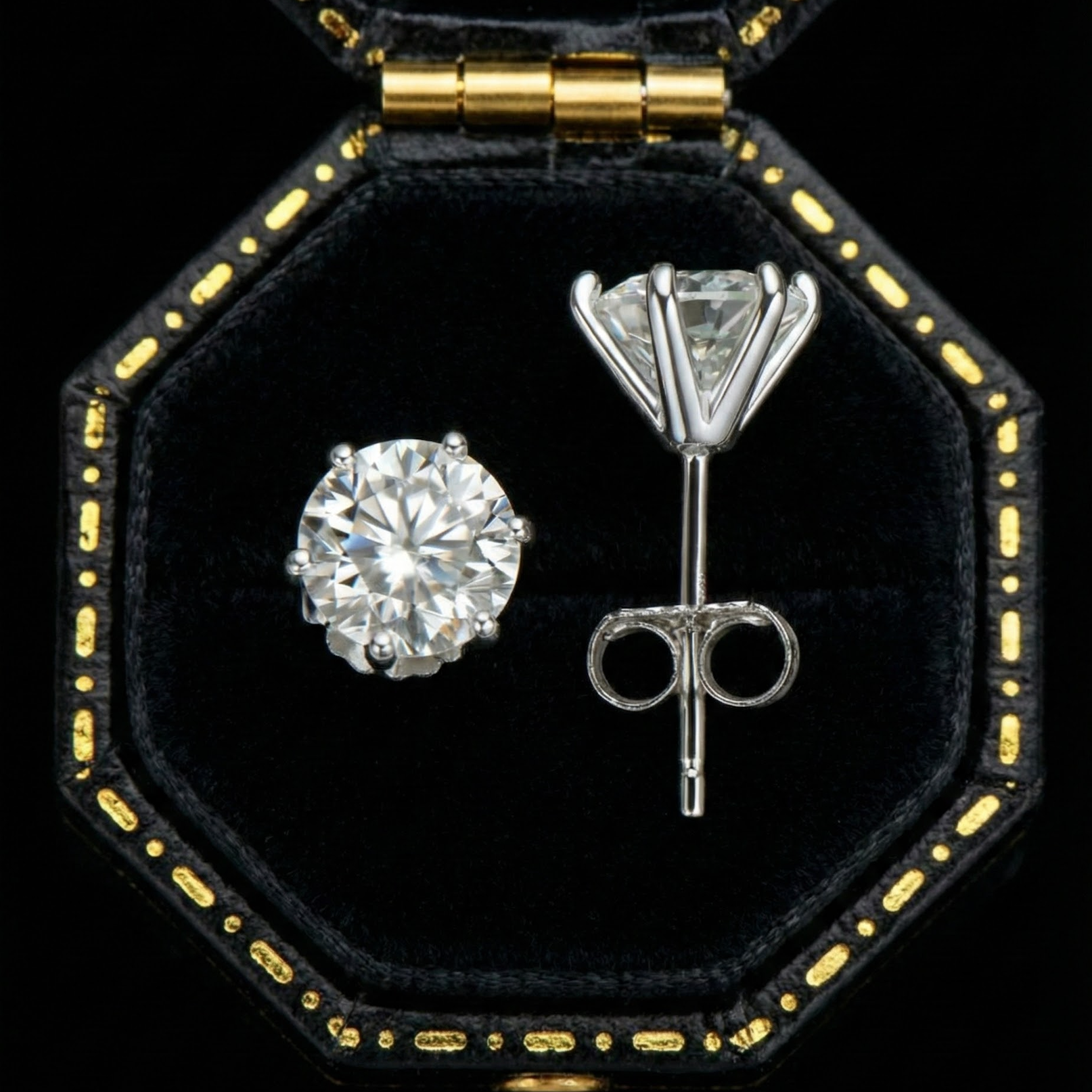 The Vanta 6-Prong Studs bring timeless brilliance into sharp focus—each round-cut moissanite held in a precise six-prong setting designed to maximize light, stability, and symmetry.