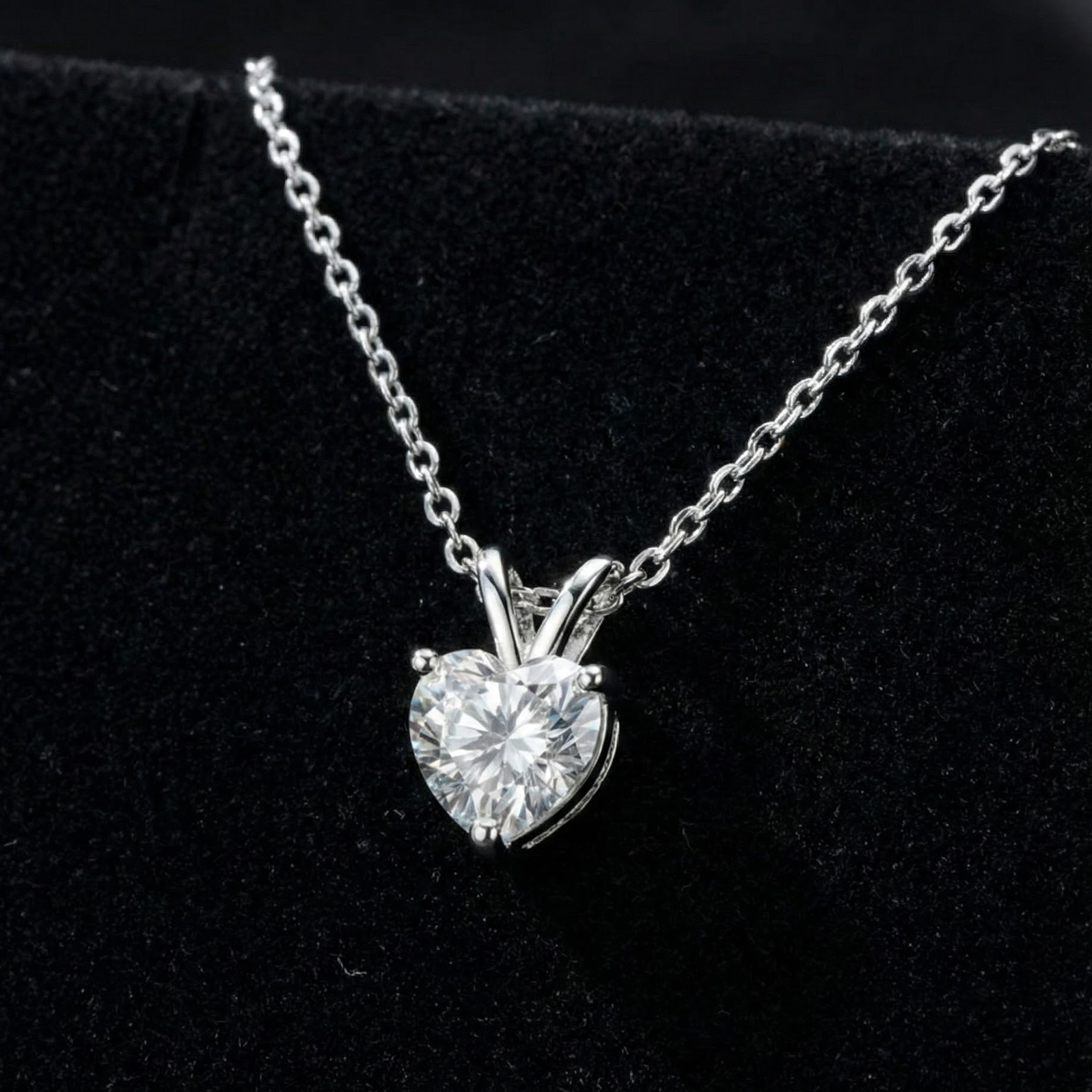 Material: Sterling Silver Gem Type: Moissanite Main Stone Color: Clear White Main Stone Cut: Heart Cut Main Stone Setting: Prong Setting Clarity Grade: VVS1