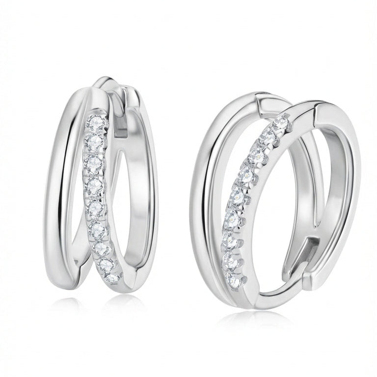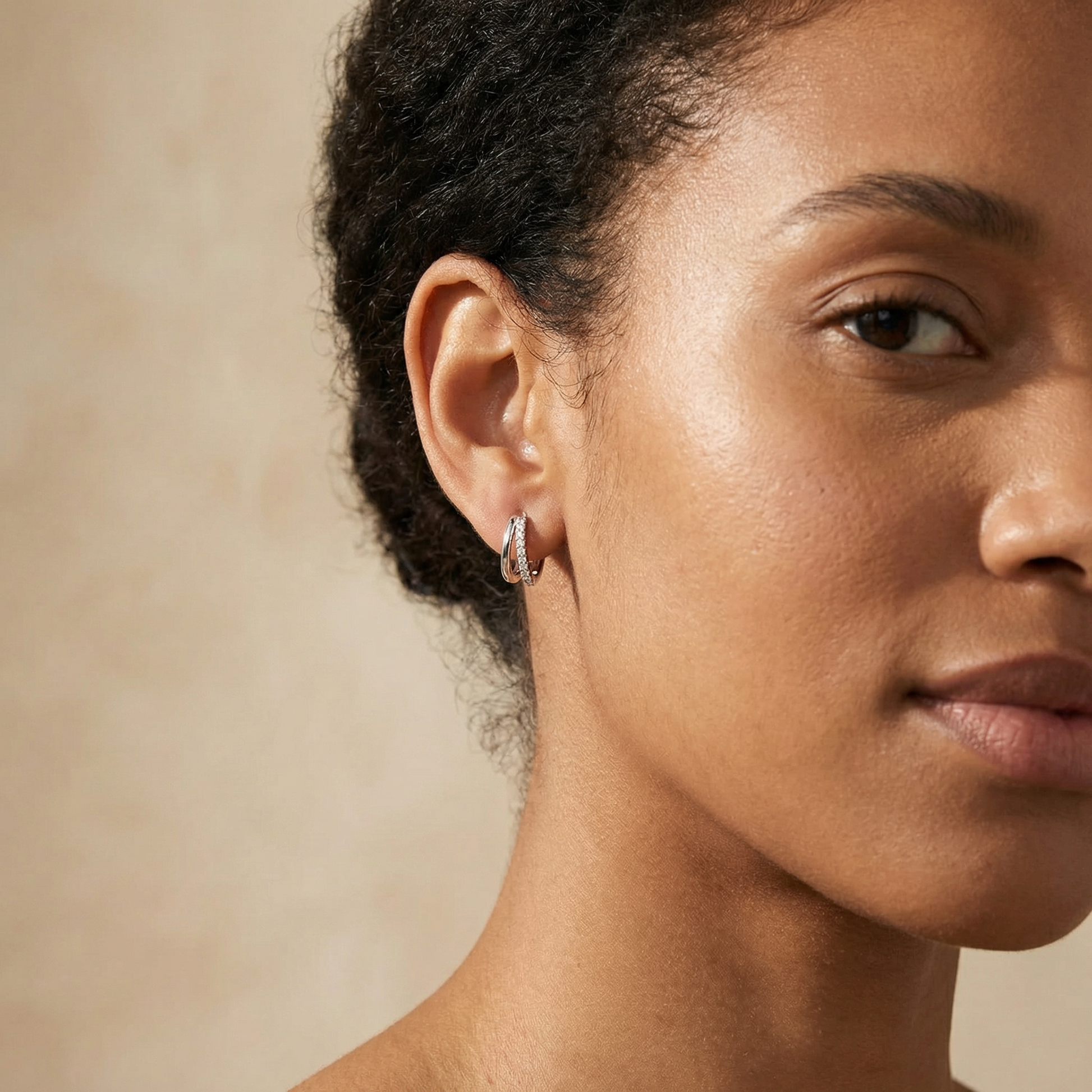 - A sophisticated interlocking triple-band design that creates the layered look of three piercings with just one.