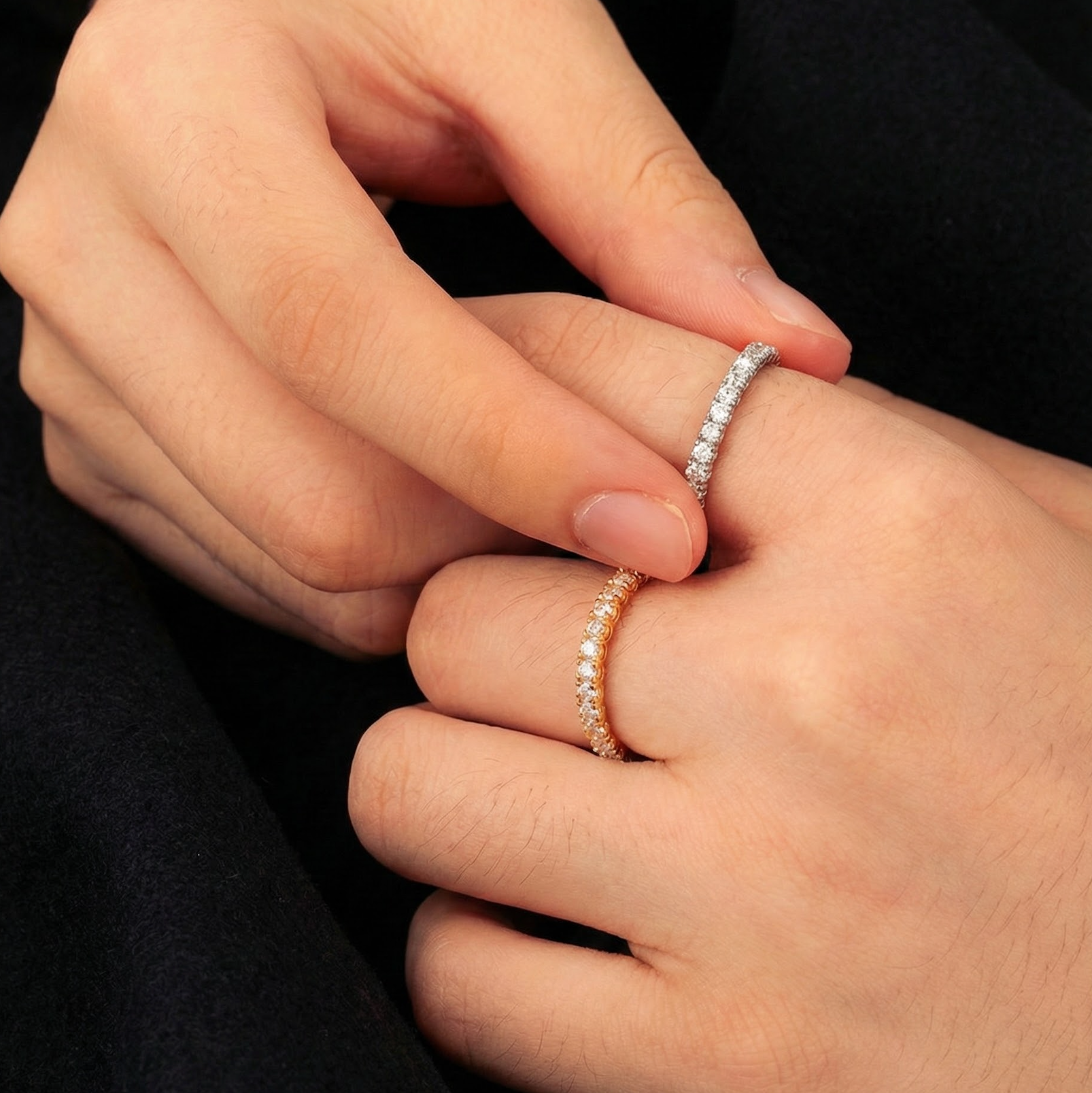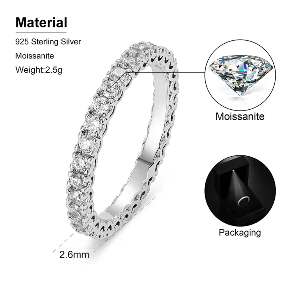 Main Stone: Moissanite (Round Cut, D Color, VVS Clarity)