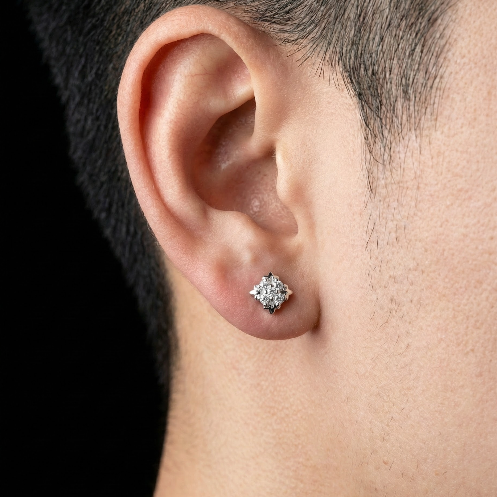 Vetra is a reflection of balance and brilliance—crafted in solid 925 sterling silver with 18K gold-plated edges and anchored by our signature D Color VVS moissanite. Designed with a refined floral silhouette, it merges industrial edge with elegant restraint.